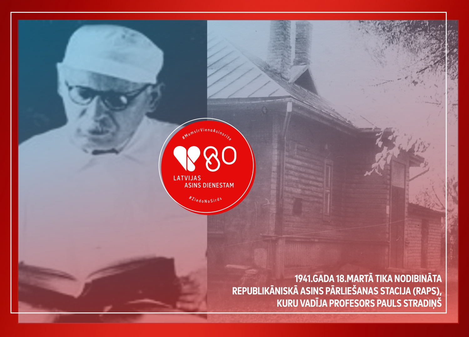 Pirms 80 gadiem, 1941. gada 18. martā, profesors Pauls Stradiņš dibināja RAPS (Republikānisko Asins pārliešanas staciju). Šis notikums bija pamats turpmākai Latvijas Asins dienesta attīstībai līdz pat mūsdienām.